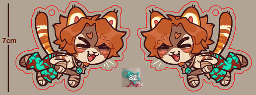 A chibi badge with interactive moving parts, typically a tail/wings/hand/etc. Single sided means only the front has art, double sided means your character will have a back and front view.